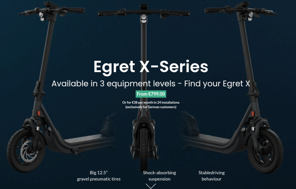 Egret ist eine deutsche Marke, die sich auf Premium-Scooter mit einem eleganten Design und einer sanften Fahrt konzentriert. Der Egret X bietet eine leistungsstarke Performance mit Geschwindigkeiten von bis zu 25 km/h (straßenzulässig in Deutschland) und einer ausgezeichneten Federung für städtisches Terrain. Mit einem robusten Rahmen, reaktionsschnellen Bremsen und einer hochwertigen Verarbeitung fühlt es sich eher wie ein luxuriöser Pendlerroller an, der für die Ewigkeit gebaut ist.