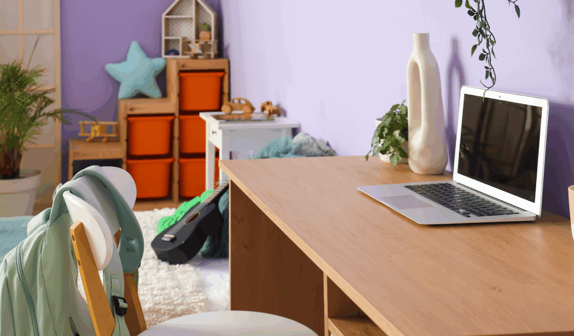 Selbst in einem kleinen Raum kann eine gut organisierte Ecke Kindern helfen, eine Routine aufzubauen, Ablenkungen zu reduzieren und sich sicherer zu fühlen, wenn sie Hausaufgaben angehen